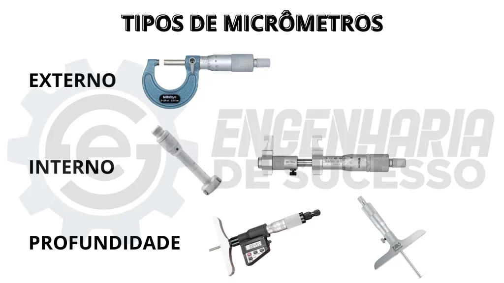 Existem vários tipos de micrômetros, cada um projetado para atender a diferentes necessidades de medição. O mais comum é o micrômetro externo, utilizado para medir diâmetros externos e espessuras. Este tipo é amplamente usado em oficinas mecânicas e indústrias de manufatura para garantir que componentes cilíndricos, como eixos e pinos, atendam às especificações exatas.
